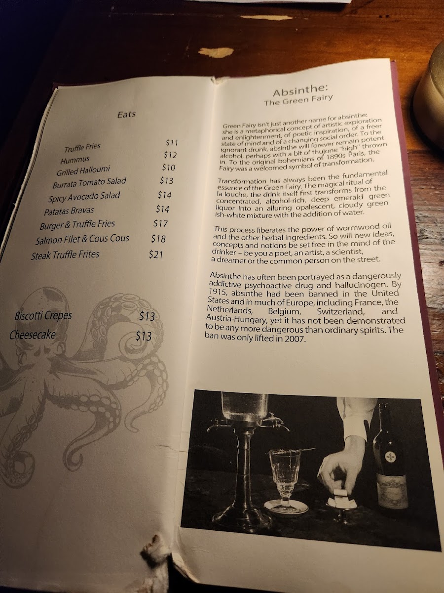 Whether you’re drawn in by classic cocktails such as the Daiquiri or Negroni, or adventurous choices like Absinthe and the playful Liquid Marijuana, the drink menu encourages relaxed sipping at a comfortably low pace. These beverages pair naturally with small plates designed for sharing or light dining, including options like savory Pork Belly Bao, fresh Tomato Salad, and indulgent Steak and Truffle Fries.