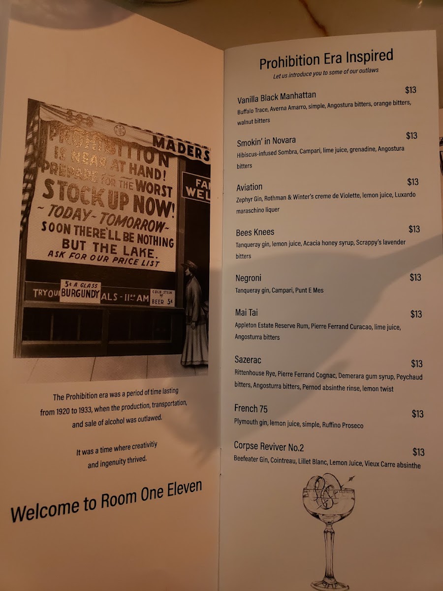 Room One Eleven Menu